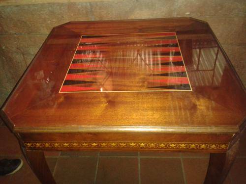 Play cards on the table top, turn over for backgammon, open for roulette.