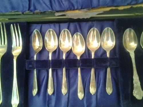 nice but incomplete set of vintage silver plated cutlery set of tea spoons and forks items are in good used condition the box is damaged as per pictures