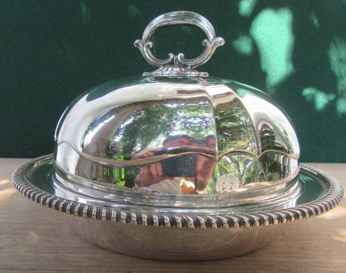 Beautiful Antique Silver plated muffin dish with lid and tray in high quality manufacture, useful for muffins or other food items when wishing to keep warm. Fantastic display item too. Plate is in good condition, slightest signs of ware and use. No dents and no repairs. tray intact.