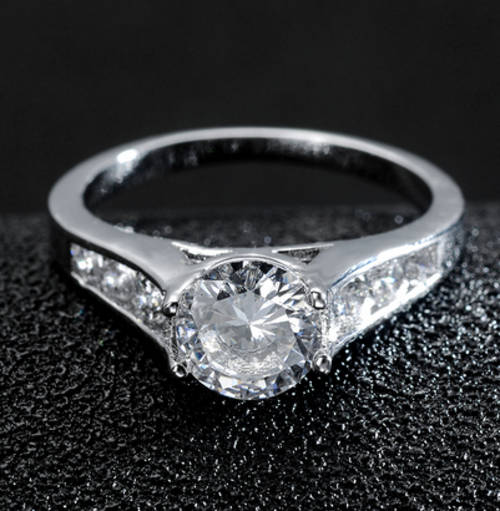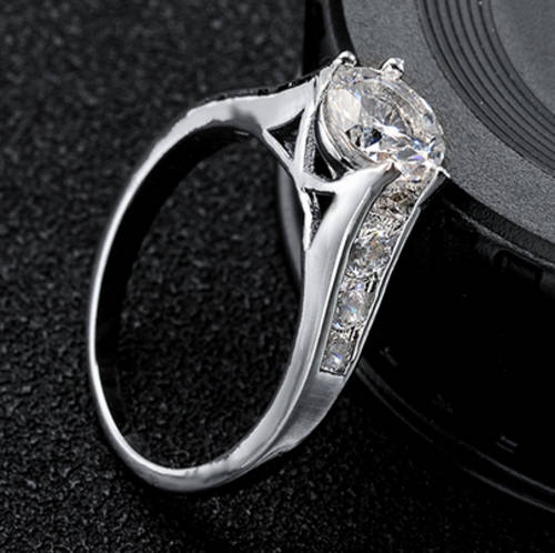 ***INCREDIBLE!! SILVER PLATED WITH SIMULATED DIAMOND RING SIZE 7/17.3MM/O***