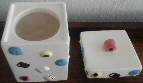THIS FABULOUS PIECE IS SQUARE IN SHAPE AND WHITE IN COLOR WITH CUTE AND COLORFUL LIQUORICE DESIGNED EMBOSSED/ RAISED.