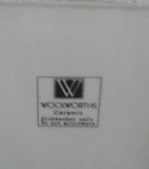 IT HAS "WOOLWORTHS CERAMIC DISHWASHER SAFE DO NOT MICROWAVE" STAMBPED UNDERNEATH THE JAR.