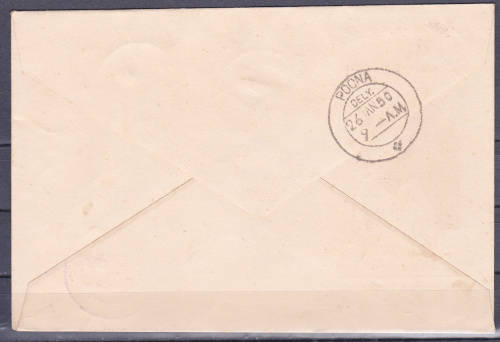 INDIA, 1950. Inauguration of Republic. The cover is in a fair condition. Address is blocked out. The CV value of the stamps +/-R 130.00. View scans for condition as it form part of the description. Note, display card not included, and, the line across the images are due to the display card that we use to scan items.