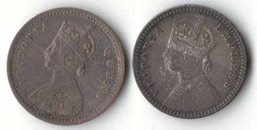 India 2 Annas 1862 & 1889 *silver