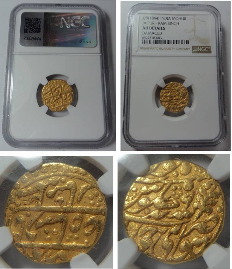 India (Jaipur) Ram Singh: GOLD Mohur 1844, NGC AU details