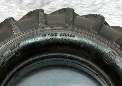 India Super Tyre promotional ashtray with Bakelite inner. The words "In Suid Afrika vervaardig" appear on the tyre.