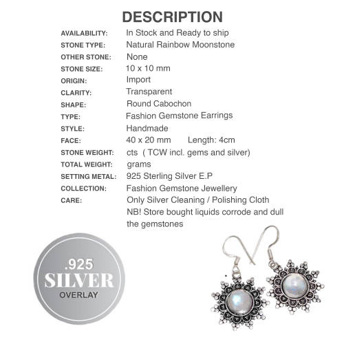 Handmade with intricate detail, these Indonesian Bali-Java Natural Rainbow Moonstone .925 Silver Earrings are a stunning addition to any jewelry collection.