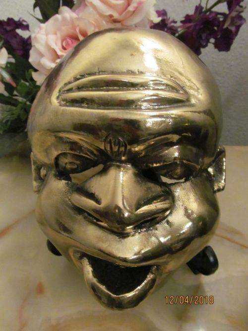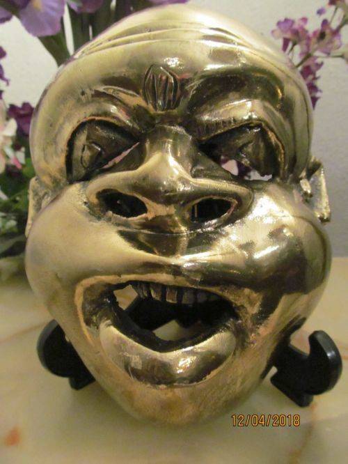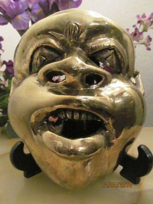 RARE VINTAGE CARVED WOOD INDONESIAN / BALINESE / JAVANESE MASK (Possibly Buddha Mask) LACQUERED OVER IN BRIGHT GOLD