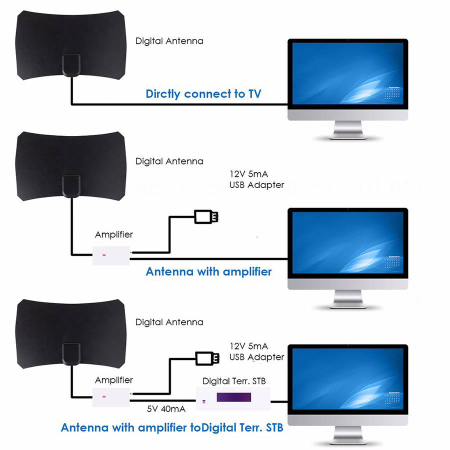 1 x Indoor HDTV Antenna 1 x Amplifier Signal Booster With Power Adapter (USB + TV 2in1) 1 x User Manual