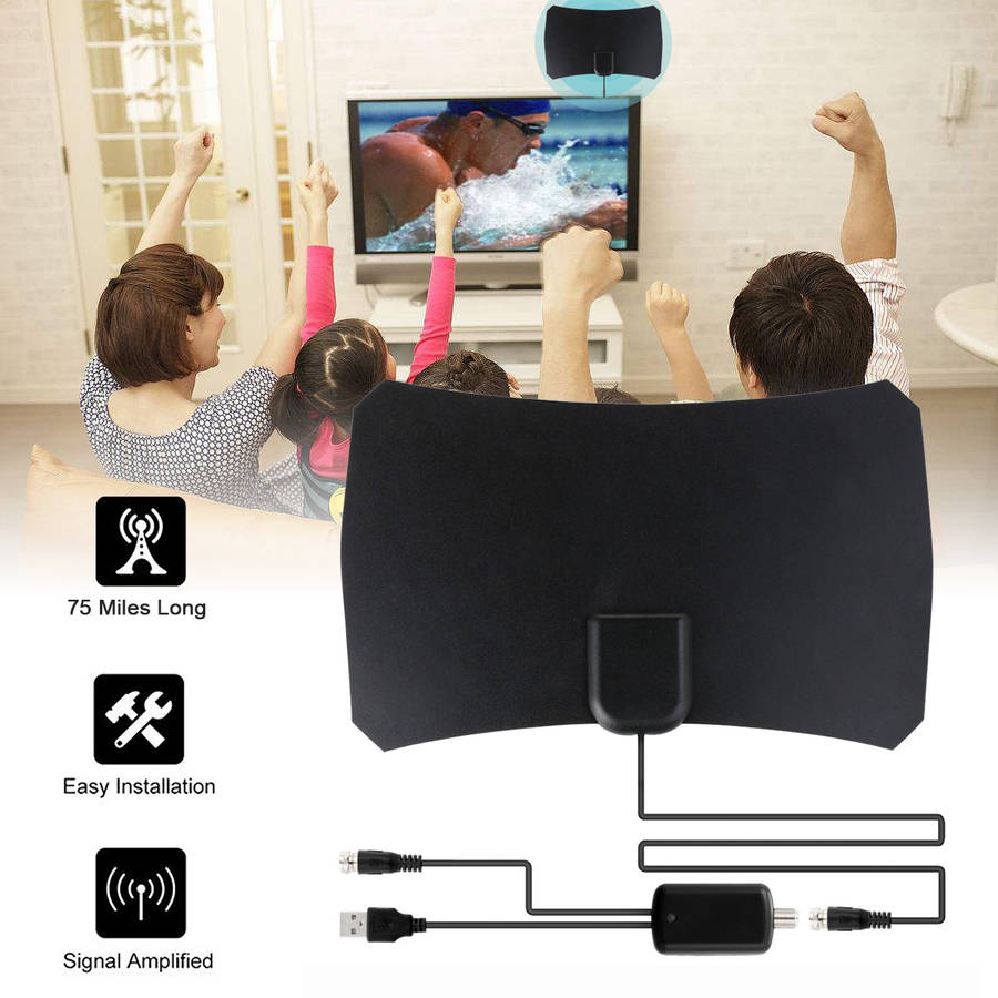 Indoor Digital HDTV TV Antenna Aerial Amplified 75 Mile Range VHF UHF