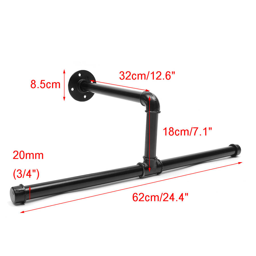 Specification: Material: Iron Color: Black Style: Antique Length: 62cm / 24.4 Depth: 32cm / 12.6 Height: 18cm / 7.1 Features: a Wall mounted 24.4inch coat and hat rack in black metal industrial pipe. a Designed to hold hats, coats, scarves, handbags, towels and other hanging items. a Perfect for your entryway, foyer, kitchen, bedroom, bathroom or patio. a Easily mounts to any flat wall space with appropriate mounting hardware (included). Package Included: 1 x Industrial Pipe Clothes Hanger