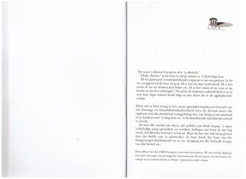 En met die media wat skree, die politici wat druk toepas, n span onbeholpe jong speurders en verskeie kollegas wat hom in die rug steek, stel Bennie Griessel n lokval. Maar hy het nie rekening gehou met die liefde van n sekswerker vir haar kind, die haat van die Sangrenegra-dwelmkartel en sy eie smagting na die helende kragte van die bottel nie.