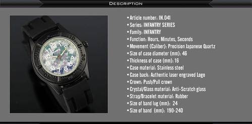 has drawn ingenious components into its self design product to create boarder and capacious range of high quality products. Infantry watch are manufactured by skilled craftsmen to meet our persistent and high quality standard.