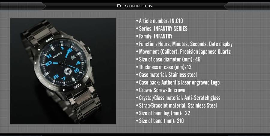 INFANTRY Corps Mens Russia Quartz Sport Army Wrist Watch Stainless Steel