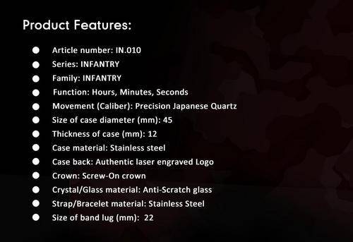 INFANTRY Date Black Military Stainless Steel Wrist Watch