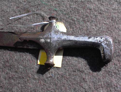 This is a Marmeluke Sabre from around the 1800's -1830's. Possibly Indian manufacture. No scabbard, blade in good condition with slight rust, silver on hilt slightly blistered.