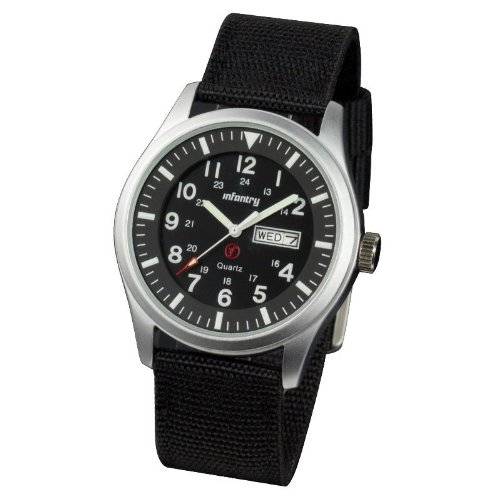 INFANTRY Men's Pilot Police Sport Quartz Night Vision Calendar Display Analog Wrist Watch Black Nylon Strap Gift #IN-044-S-N