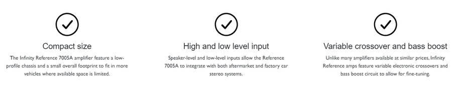 Unlike many amplifiers available at similar prices, Infinity Reference amps feature variable electronic crossovers and bass boost circuit to allow for fine-tuning.