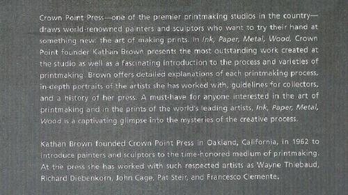 Ink, Paper, Metal, Wood - Painters and Sculptors at Crown Point Press By: Kathan Brown
