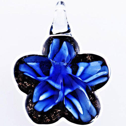 INNER FLOWER MURANO GLASS LAMPWORK PENDANT - FLOWER SHAPE - BLUE - 43x32x11mm