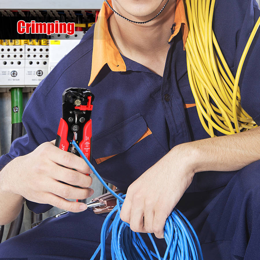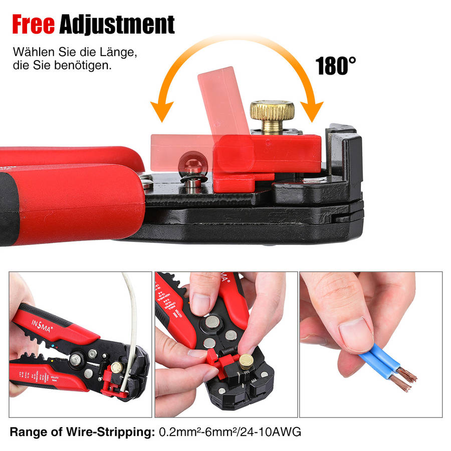 Description : Stripping range: 24-10AWG/0.2-6mm2; 22-10AWG insulated terminal; 22-10AWG non-insulated terminal; Mars plug connector: 7-8MM; Insulated handle Features : Hardness up to: HRC66-60ᆪ CR12MOV steel cutter head: high precision, easy stripping Zinc alloy head: The thickness of the bottom plate is up to 4mm and integral with the entire head for stability and robustness. Double-splicing soft sheath handle: ergonomic, better grip Sharp trimming port: sharp trimming Simple crimping design: easy to make crimping Specification : Color: red (186C) + black Size: 205*107mm (length x width) Clamp head material: zinc alloy, tangential cutting process Handle material: PP+TPR Package includeds : 1 x stripping plier 20 x insulated terminals 40 x non-insulated terminals Details pictures :
