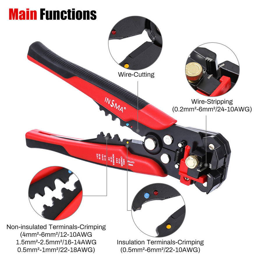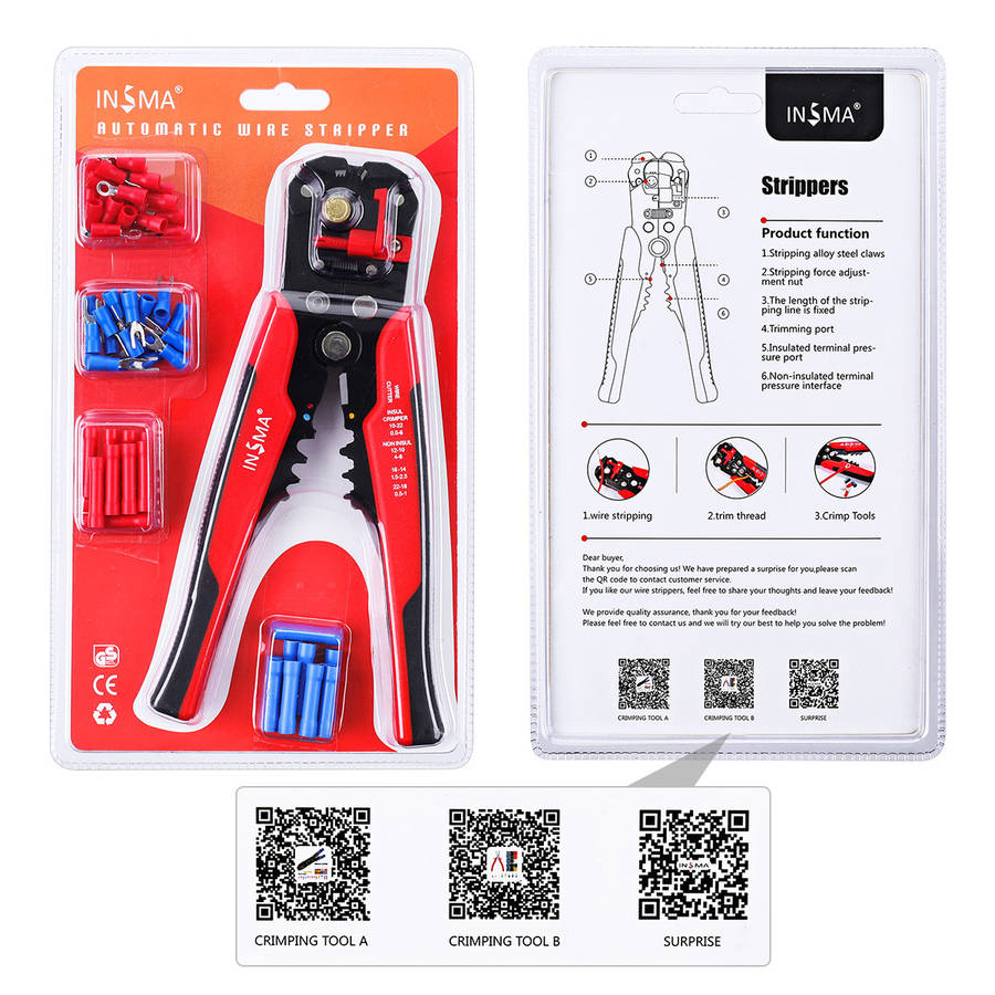 Description : Stripping range: 24-10AWG/0.2-6mm2; 22-10AWG insulated terminal; 22-10AWG non-insulated terminal; Mars plug connector: 7-8MM; Insulated handle Features : Hardness up to: HRC66-60ᆪ CR12MOV steel cutter head: high precision, easy stripping Zinc alloy head: The thickness of the bottom plate is up to 4mm and integral with the entire head for stability and robustness. Double-splicing soft sheath handle: ergonomic, better grip Sharp trimming port: sharp trimming Simple crimping design: easy to make crimping Specification : Color: red (186C) + black Size: 205*107mm (length x width) Clamp head material: zinc alloy, tangential cutting process Handle material: PP+TPR Package includeds : 1 x stripping plier 20 x insulated terminals 40 x non-insulated terminals Details pictures :