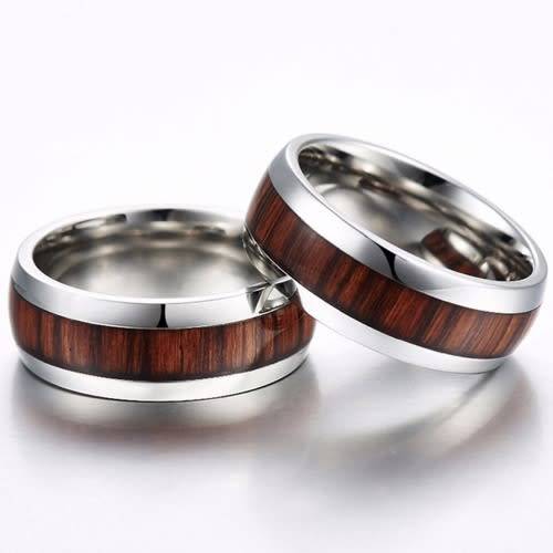 INSPIRED WOOD INLAY 316L STAINLESS STEEL BAND. RING SIZE 11 / W