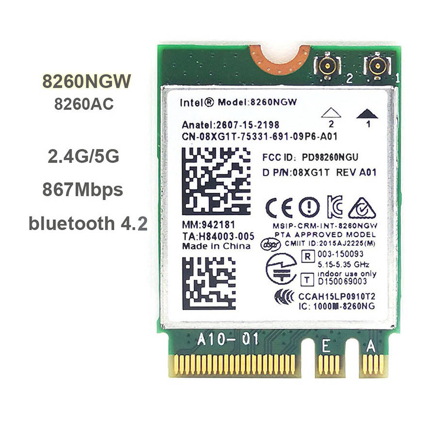Specifications: - Brand: Intel - Model: 8260NGW 8260AC - Speed: 2.4G:300M, 5G:867M - bluetooth: 4.2 - Interface: NGFF M.2 - Support system: win7, win8, win8.1, win10 (support part of Linux)