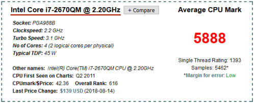 CPU IS PERFECT 100%, LAPTOP MOTHERBOARD WENT SO NO USE.