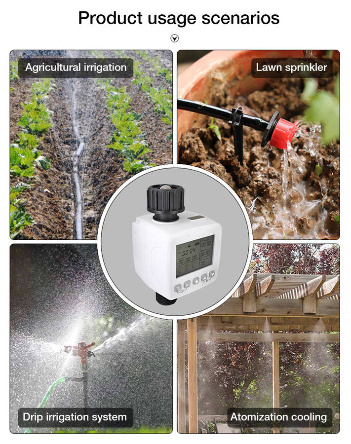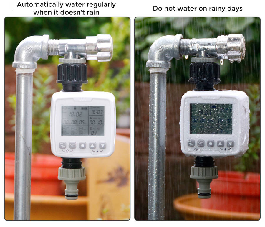 Product | Intelligent Irrigation Timer IPX5 Waterproof Irrigation Controller LCD Screen Display 6 Groups Independent Timing Programs Irrigation Timer with Rain Sensor |