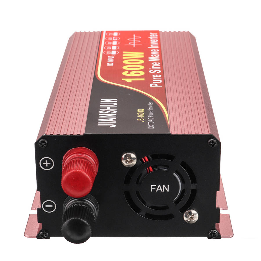 Features: - LCD display screen. - Buzzer reminder device. Once any protection of the inverter is triggered, the inverter immediately disconnects the power supply and the load enters a protection mode and reminds people through a buzzer reminder. - Double socket. - Up to 90% conversion rate. - Five intelligent protection, overload protection, high voltage protection, low voltage protection, over temperature protection, short circuit protection. - Intelligent temperature control fan, make the inverter more quiet. When the temperature ≤ 45 ℃, the fan stops working, when the temperature ≥ 45 ℃, the fan began to work. - Aluminum magnesiums alloy shell, light weight, good thermal conductivity, can quickly reduce the temperature of components, work long hours are not affected. New Featues: - Full bridge technology, also known as full bridge inverter, is the most stable and reliable design at present. - Dual control cooling mode of temperature control and power control. - Full time short-circuit protection function, whether it is full load, high temperature, short-circuit boot, boot short-circuit are safe protection. - Strong load capacity - The waveform is stable without burr. - The machine is equipped with adjustable buttons: output voltage, output frequency, convenient switching. - Highly integrated MCU control, more stable and reliable Packaged included: 1 x Inverter 1 x User manual 1 x Ultra-thick battery cable (48V1600W /60V1600W /12V3000W /24V3000W /12V4000W /24V4000W /12V5000W /24V5000W /6000W /8000W) (2 x Ultra-thick battery cable (12V1600W /24V1600W /2200W /48V3000W /60V3000W /48V4000W /60V4000W /48V5000W /60V5000W ) Correct Connet Way: POSITIVE FROM THE BATTERY TO POSITIVE OF INVERTER and NEGATIVE FROM THE BATTERY TO NEGATIVE OF THE INVERTER! (+...connect...+,-...connect...-) ![]()