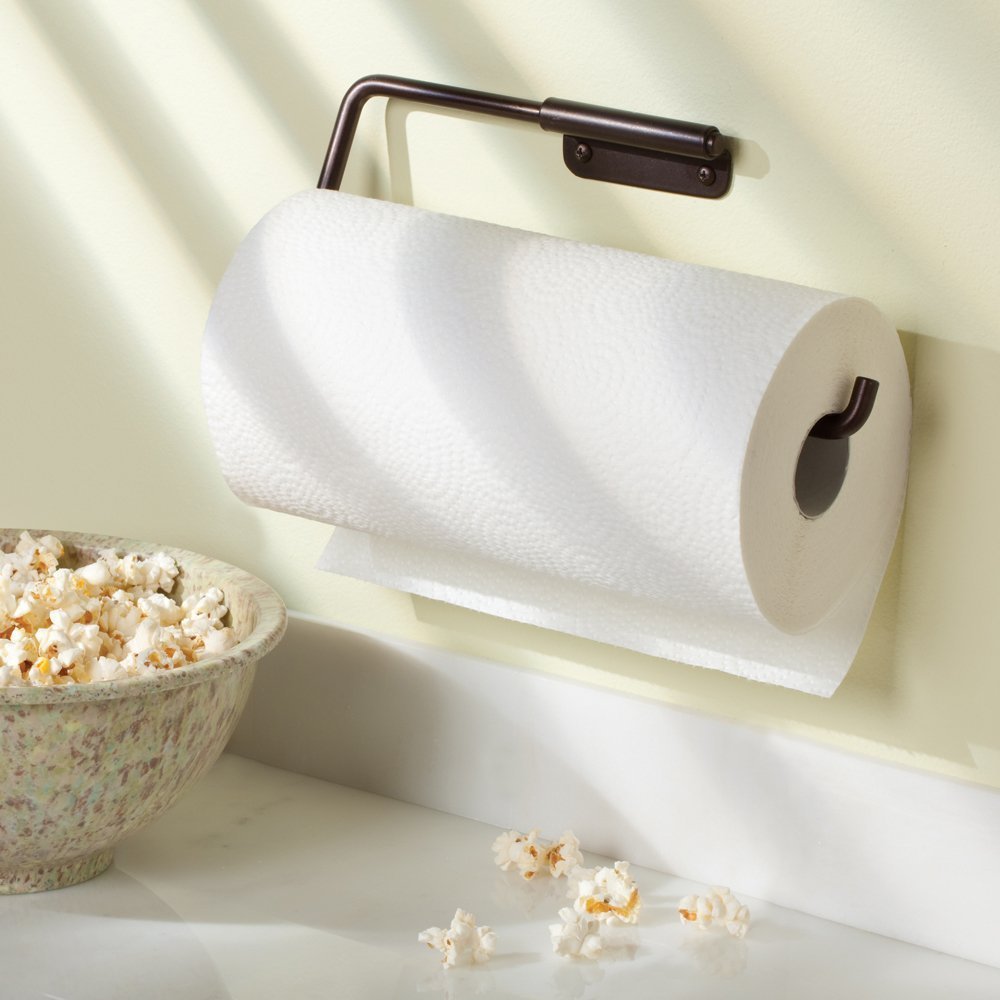 Color:Bronze The InterDesign Swivel Wall Mount Paper Towel Holder keeps yourpaper towel rolls easily accessible. Made of durable steel, it mounts to wallsor under cabinets with included hardware.