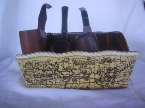 INTERESTING PIPE SET - PETERSON HALLMARKED ,KEYSER AND MEDICO WITH CERAMIC PIPEHOLDER