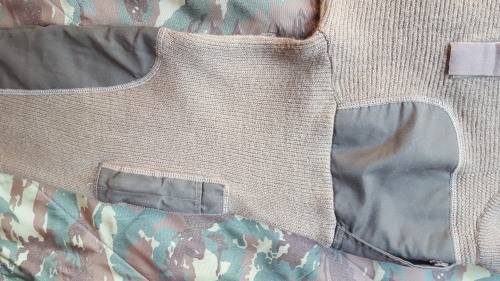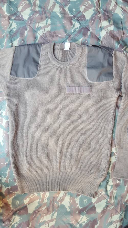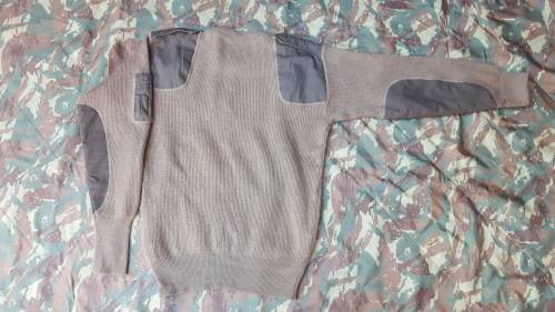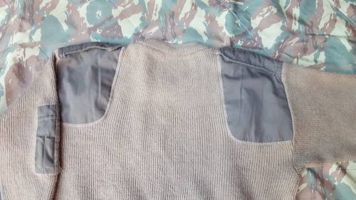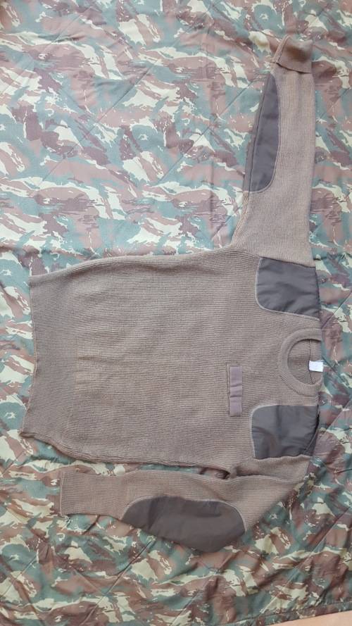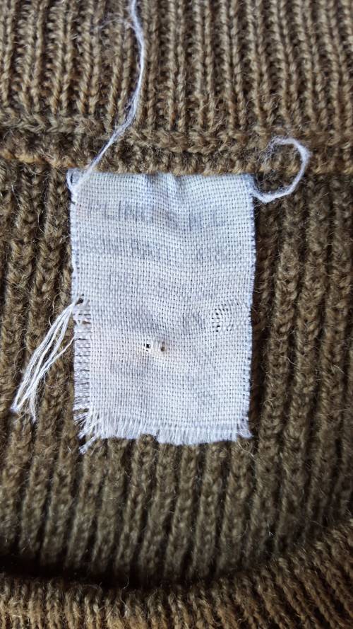 Here on auction we have a very handy quality made medium weight knit old school type wool jersey or jumper - International (Spanish?) khaki Military style jersey/ jumper (wool) in very good used condition Medium size.