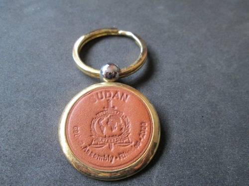 COLLECTORS ITEM -INTERPOL KEYRING.GOLD TONE WITH LEATHER INNER.