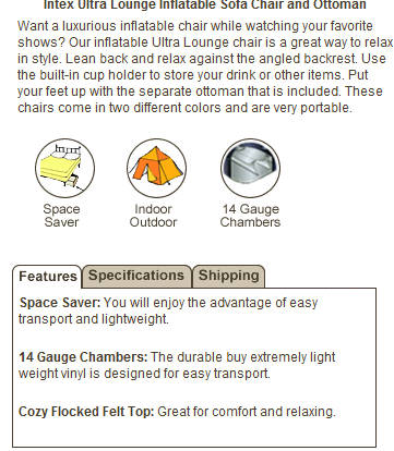 INTEX INFLATABLE ULTRA LOUNGE SOFA CHAIR & OTTOMAN - BRAND NEW