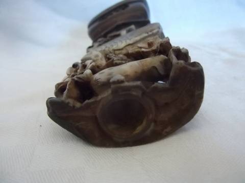 INTRICATE VINTAGE CHINESE STONE CARVING - USED AS CANDLE HOLDER?