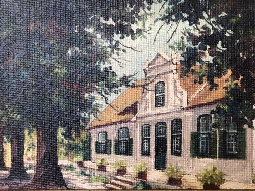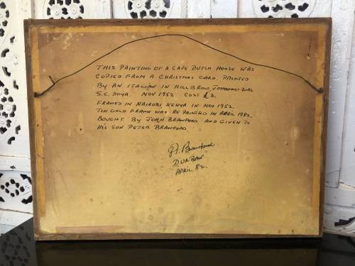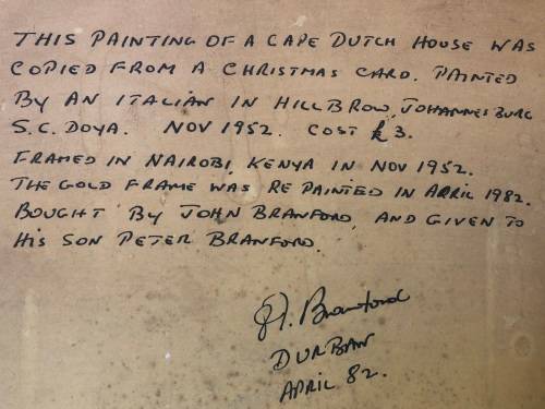 CARLO SDOYA (1914 - 1996) FRAMED OIL ON BOARD OF A CAPE DUTCH HOUSE c1952 - FASCINATING HISTORY OF THIS GORGEOUS PAINTING ON THE BACK - CHECK THE PICTURES BELOW