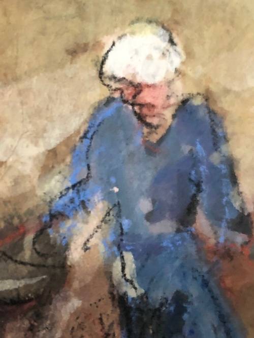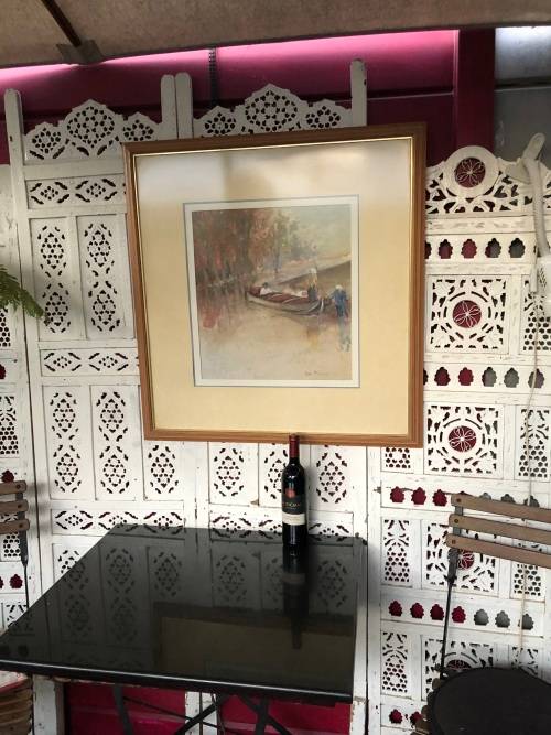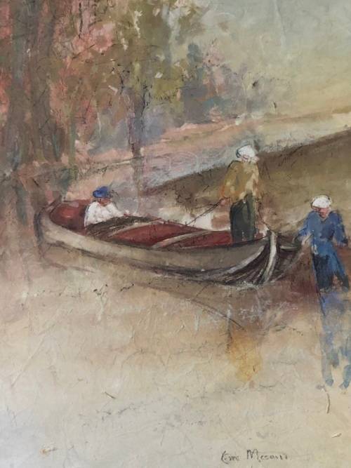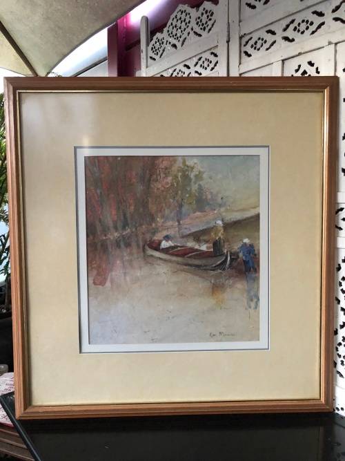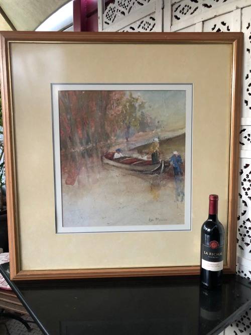 INVESTMENT ART !!! ESTE MOSTERT (1959- ) STUNNING FRAMED PASTEL ON PAPER - LADIES DRIFTING IN A BOAT - PAINTED ON HAND MADE PAPER - FRAMED BEHIND GLASS