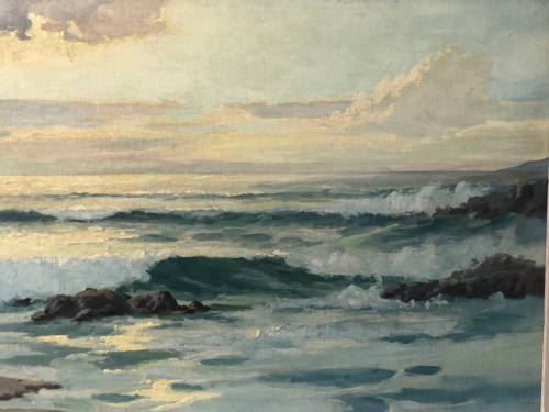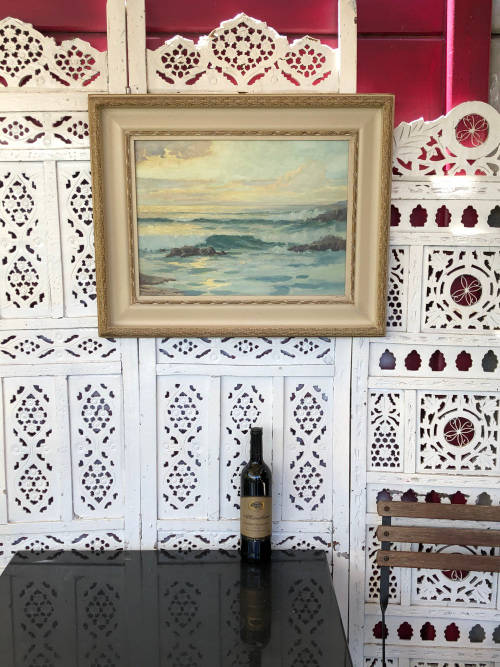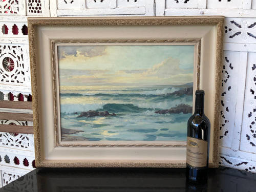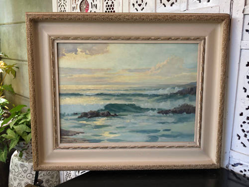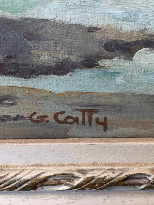 GIUSEPPE CATTY (CATARUZZA) (SA 1914 - 1994) OIL PAINTING ON CANVAS THAT IS FIXED TO BOARD - FRAMED IN A STUNNING VINTAGE FRAME - READY TO HANG - IN EXCELLENT CONDITION - TITLED ON THE BACK "PALM BEACH - SOUTH COAST NATAL"
