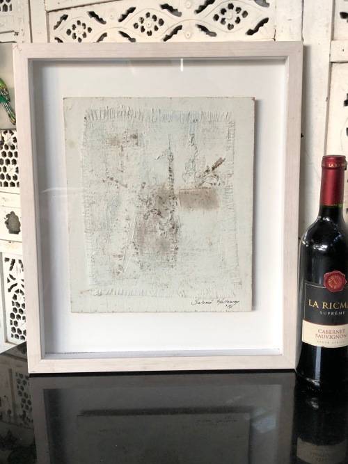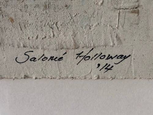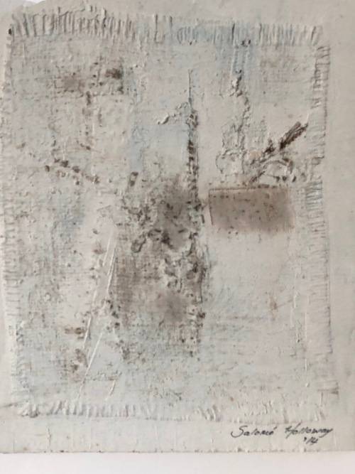 South African born artist, Salomé Holloway(1964,) has lived for over 50 years in South Africa. Art is the medium through which she expresses thoughts, insights and experiences that are not easily translated into words. Her mixed media work varies from quiet to dramatic. The process of her creation involves an attentive and sensitive examination of aspects of herself, the other, and of the world - seen and unseen - around her. Salome’s art work is an ever evolving, intuitive process. She applies paint to the canvas without a preconceived idea of how the composition will evolve. Figures, symbols, form and movement emerge out of the white expanses of the canvas, forming graceful simplicity through implementing a minimalist palette and strong contrast between light and dark. Some of Salome’s works are highly experimental and she has been referred to as the Queen of Textures in her local Art circles. Texture and touch are the mediums through which Salome believes that the possibility exists for the viewer to become part of her dynamic yet delicate, and enduringly thought-provoking work. Her fine use of line makes that which is invisible, tangible. Salome’s work calls the viewer to embrace their own world of feelings and emotions on a deeper level. While Salome favours abstract compositions, in some of her pieces there is reference to figuration: This figurative element has a symbolic, near-mystical value. This artist’s diverse works range from the transcendent elements to deeply earthy assemblages . Living a nature-filled, creative and meditative life in Hermanus - a coastal town in South Africa - Salome works spontaneously, freely interpreting wood, stone, metal, concrete and colour in ways that suit her aesthetic sensibility. This strong connection to the elements of life and nature can be found in most of her works. Her refined approach is to capture these heavy materials, and to transform them into elegant, even weightless, elements in her compositions. In addition to being an artist, Salome is a designer and transformer of the mundane. Fashion is a strong element and vehicle for her self-expression. Several local photographers have captured her inner journeys as expressed through her outer appearance. Salome’s art has featured in many of South Africa’s Overberg towns and galleries - Hermanus, Sandbaai, Botriver, Paarl and Napier.