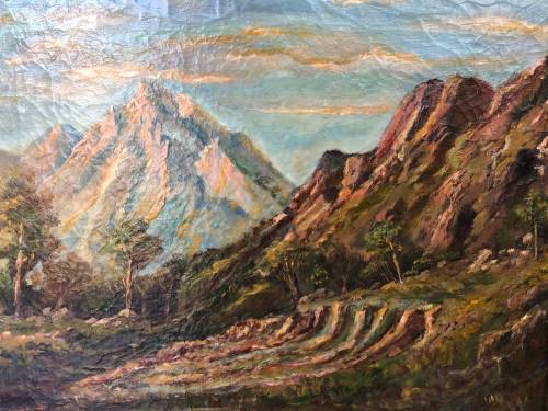 Titta Fasciotti was born in Bergamo, Italy in 1927. He had been an artist all his life. He came to live in South Africa in 1948 under the most difficult circumstances possible at that time. His father Gino was an Italian prisoner of war held in South Africa. In South Africa he then studied under the well known artist, W.G Wiles. He was a painter of landscapes, still life, seascapes and figures. His use of colour was often striking and rich and he contrasted dark shadows with brilliant sunshine.He brought freshness and spontaneity to his paintings. In his Karoo landscapes you can see how he managed to capture the peace and quiet countryside skillfully.