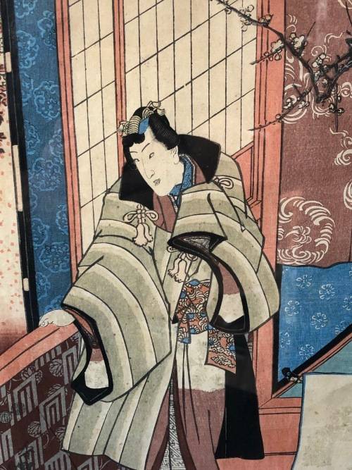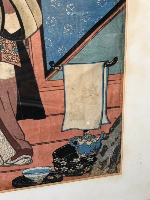 EXTREMELY RARE !!! - UTAGAWA KUNISADA (1786 - 1865) ORIGINAL JAPANESE EDO UKIYO-E WOODBLOCK TITLED "SPRING MORNING"