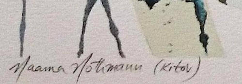 Naama Nothmann was born in Jerusalem the daughter of Rabbi Eliyahu Kitov. She studied graphic and fine art in Israel and in New York at the School of Visual Arts and Delehenty Architecture Institute. She opened a graphic studio in New York and later in Jerusalem. In 1981 she went to South Africa with her family, and there she had the opportunity to further develop her fine art skills. Her works reflect the wellspring of her broadly based talent, ranging in colour from delicate and quiet to strong and rich; in texture from broad flat spaces to corrugated boards; in subject matter from dreamlike symbols and images from her Jewish background to matter-of-fact still life images of her studio world. Most of her paintings are done in her unique collage technique, although she uses many different styles and media. She also specialises in graphic and commercial art.