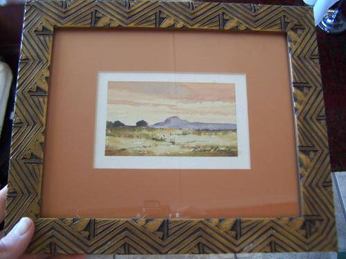 RICHARD RENNIE was born in 1932 and is one of S.A's TOP listed artists. This artist's work is very sought after and a great INVESTMENT. Framed and behind glass. Painting size About 14cm by 9cm (white section included) Frame 29cm by 24cm.