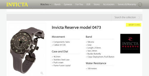 Brand: invicta model: 0473 dial window material type: flame fusionclasp: push button deployment claspcase material: gun metal stainless-steelcase diameter: 47 millimeterscase thickness: 12 millimetersband material: rubber/polyurethaneband length: 9 inchesdial: