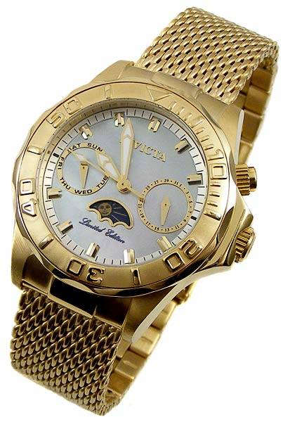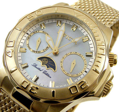 INVICTA LADIES SEA WIZARD III Limited Edition Moonphase Day/Date Gold!