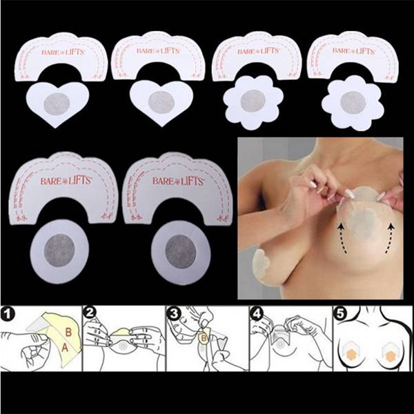 Features: Invisible breast lift tape and nipple covers Adhesive, extremely easy to apply Comfortable and secure Can use them with or without a bra