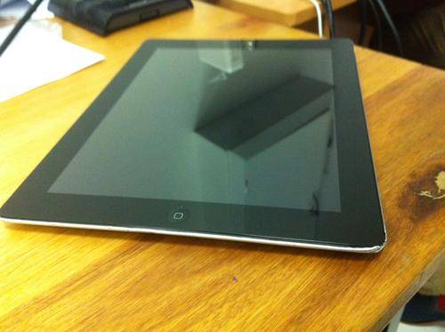This iPad 2 16GB WIFI + 3G has had its screen replaced. The frame is damaged on the corners and shows signs of use.