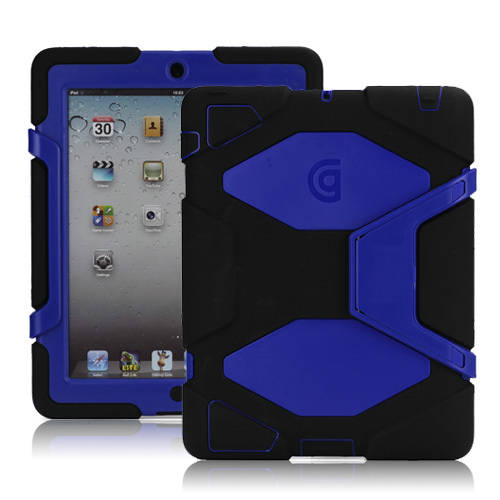 Griffin's Survivor Military-Duty Case is designed from the inside out to protect your iPad from extreme conditions ... dirt, sand, rain, shock, vibration and a host of other environmental factors.Survivor is built on a shatter-resistant polycarbonate frame clad in rugged, shock absorbing silicone. A built-in screen protector seals your Multi-Touch display from the outside environment, while hinged plugs seal the dock connector, camera lens, headphone port, hold switch and volume controls. The included stand clips on, then folds open for landscape viewing and typing.